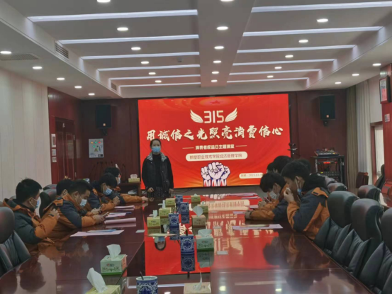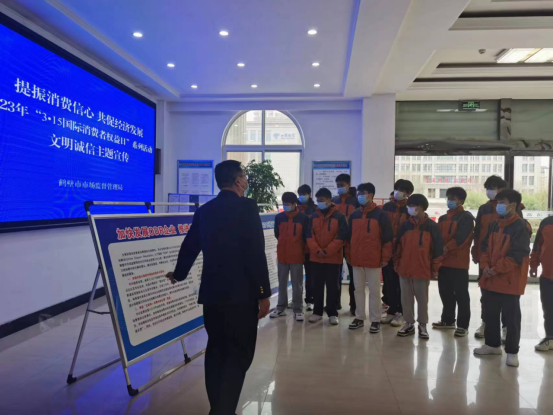 在第41个3·15国际消费者权益日来临之际,为营造安全放心的校园消费环境,3月15日,吴艳华、韩颖丽、李威威三位老师带领经济管理学院2021级高职电子商务2班的员工来到了鹤壁市质量监督管理局,邀请市质监局执法人员为员工们上了一堂生动的“消费课”。此次活动受到了市质监局12315指挥中心领导们的大力支持。