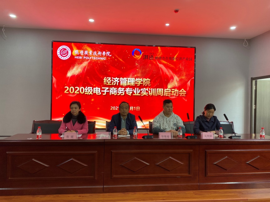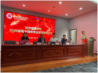 2021年11月1日上午9:00,经济管理学院2020级电子商务专业实训周启动仪式,于鹤壁市在线新经济产业园多功能报告厅顺利举行。经济管理学院负责人元世娇,副经理白钢华、教学办主任张媛、鹤壁新经济产业园营运发展中心总裁兼培训学院经理徐海迪及2020级电子商务专业一百三十多名师生参加本次启动会。会议由管理教研室主任韩颖丽主持。