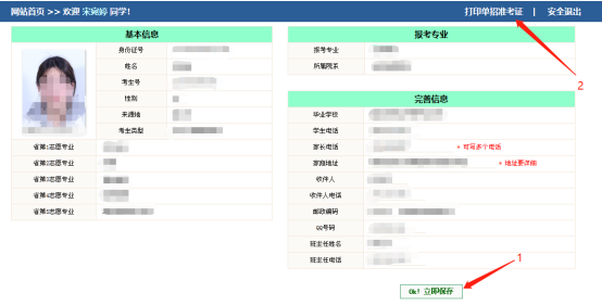 2.点击右上角“打印单招准考证”,按照提示打印单招考试准考证。