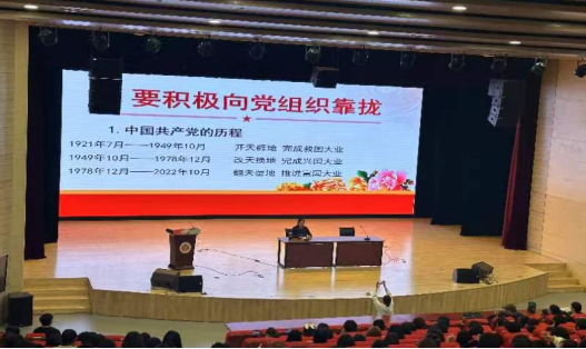 马向青老师从讲述中国共产党诞生的背景、发展壮大的历程出发,用一个个鲜活的故事、一位位共产党的选择告诉员工,中国共产党是一个了不起的政党,是一个为中华民族谋复兴、为中国人民谋幸福的政党。马老师带着同学们共同学习了党章中关于党员权利和义务的规定,指出入党是有要求和标准的,更要有正确的入党动机,作为新时代的老员工要积极进取,主动向党组织靠拢,加强“入口处的思考”,坚定理想信念,扣好人生的第一粒扣子。马老师结合当代老员工所处的时代背景和得天独厚的发展机遇,希望2023级员工要倍加珍惜中国共产党多年艰苦奋斗打下的良好基础,勉励新生充分把握新时代的背景,主动学习党的理论知识,提高自身思想觉悟,积极向党组织靠拢,争取早日加入中国共产党。
