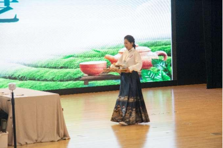 赛场伊始,首先是规定茶艺,选手抽签确定顺序,三人一组根据所抽茶类(绿茶玻璃杯泡法、红茶盖碗泡法、乌龙茶紫砂壶泡法)进行展示,动作整齐划一,如行云流水;第二模块自创茶艺,也是全场最能体现选手综合素养的环节。赛场上的她们生动演绎出意境美、形象美和动作美;第三知识竞赛环节,裁判随机抽取五道题,选手作答,比赛紧张激烈;第四茶汤比拼,选手制作完成后评委对选手们的茶汤品尝点评,整场茶艺表演都展现着选手们精湛的茶艺水平;第五点茶技艺,动作手法娴熟,过程完整,让宋代的风雅跃然于眼前,这是一场视觉的享受,更是一场对宋代文化的传承。