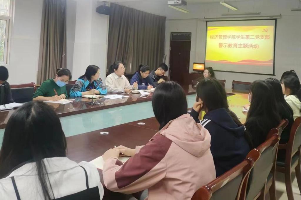 2023年10月25日,经济管理学院员工第二党支部在NC楼1229围绕“明方向、正风气、立规矩、强免疫”开展警示教育活动,支部教师党员、在校积极分子全体参与,在外实习员工党员通过线上会议形式参与,会议由支部书记刘新静主持。