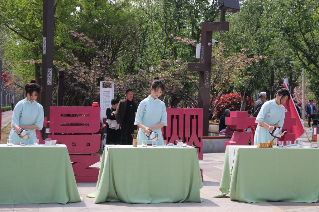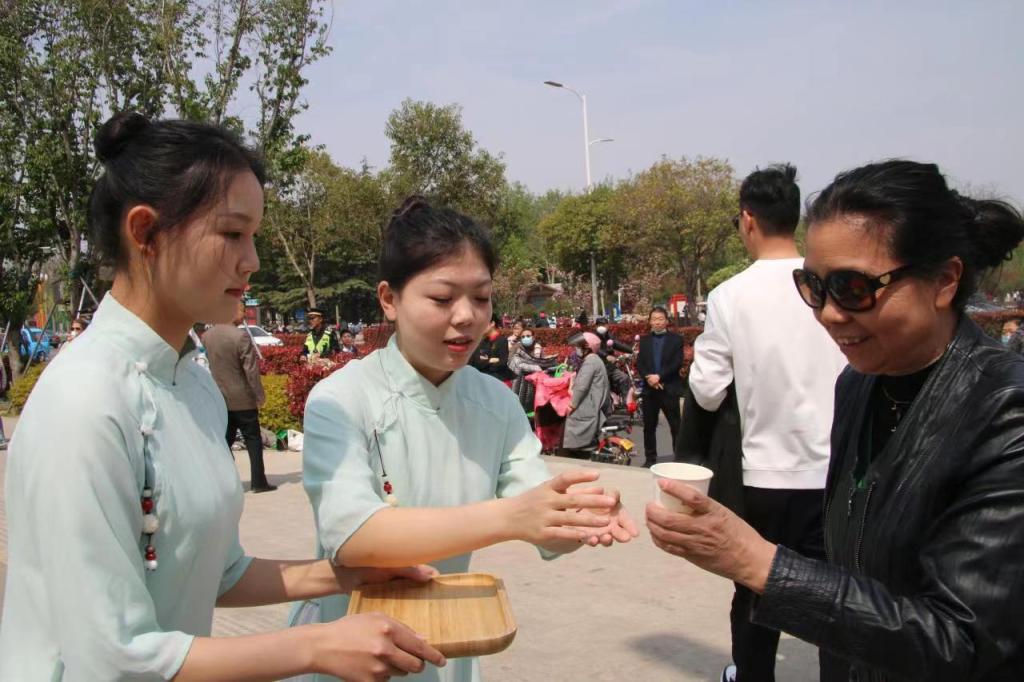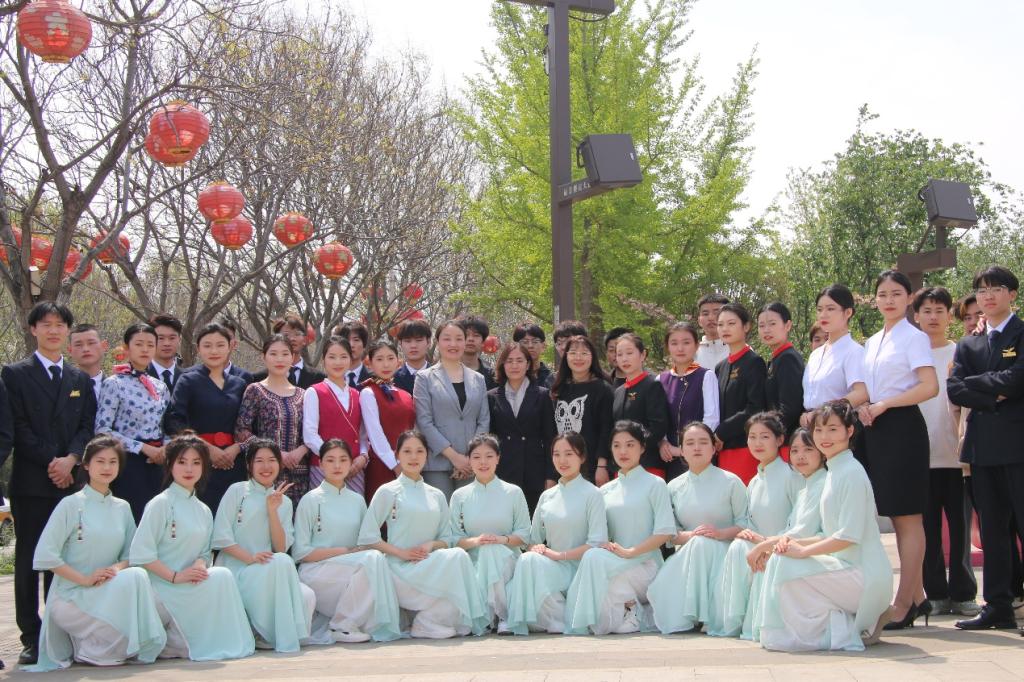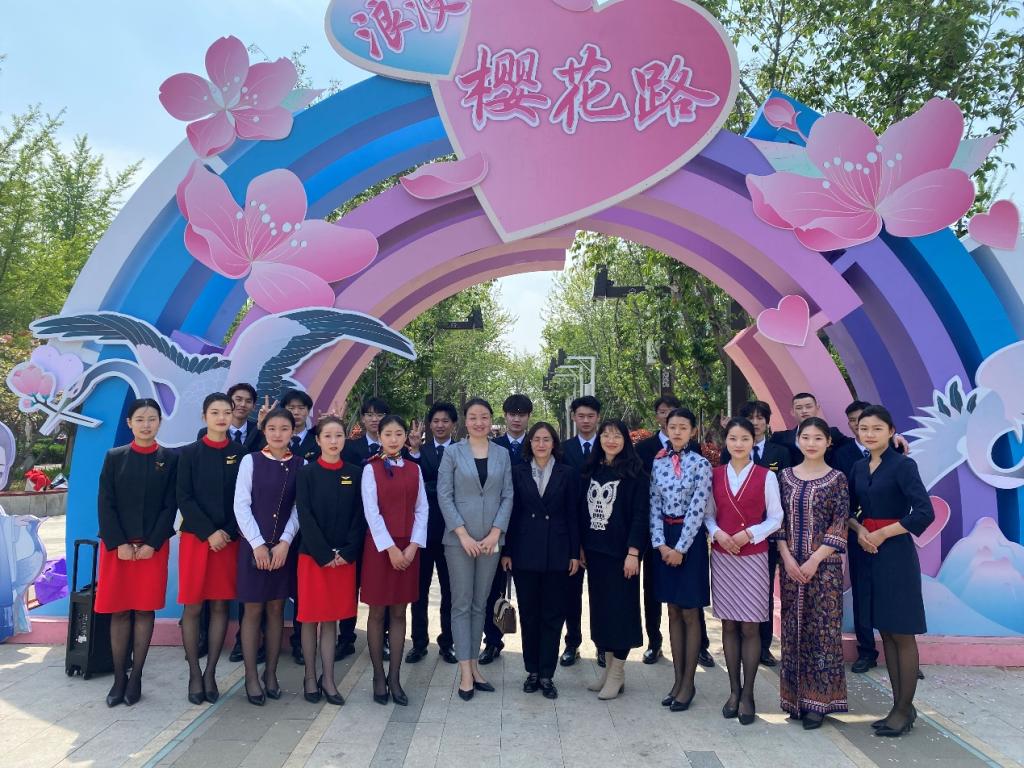 在第九届中国(鹤壁)樱花文化节开幕期间,为宣传中华优秀传统文化——茶艺和礼仪,提升员工的职业素养和综合表现能力,ued官网体育茶艺社指导老师常中爱和蓝天梦空乘社指导老师李景慧围绕樱花节主题精心策划展示活动,带领社团优秀成员参加了展示。