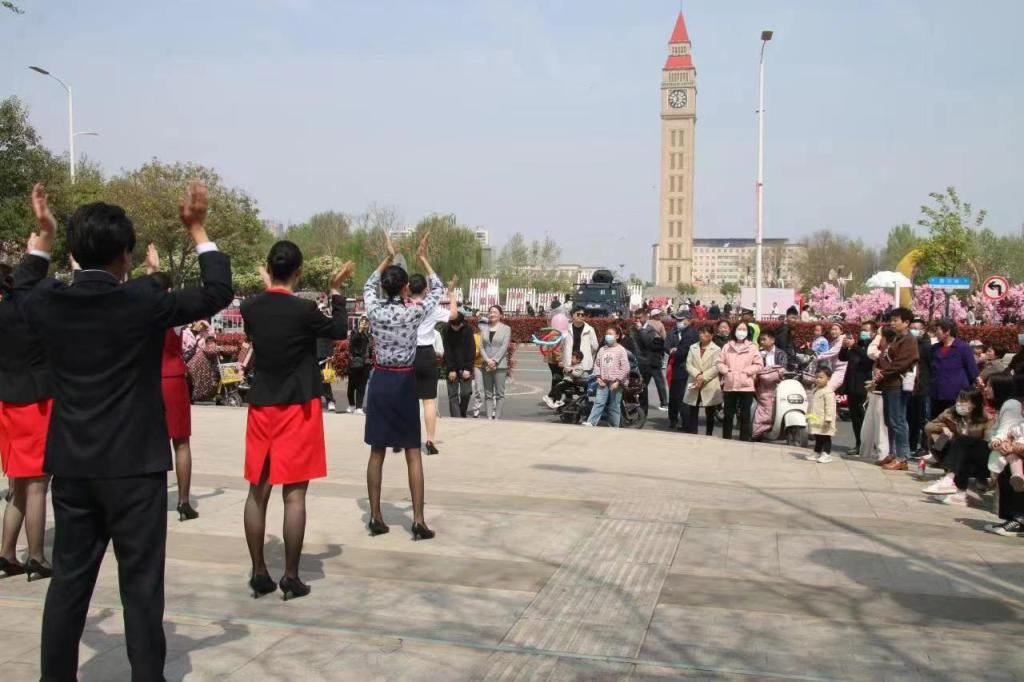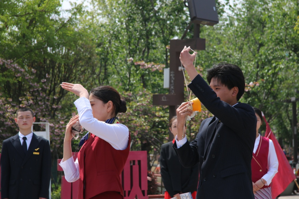 4月8日上午,ued官网体育茶艺社和蓝天梦空乘社在樱花大道和世纪广场进行了茶艺和民航礼仪展示。