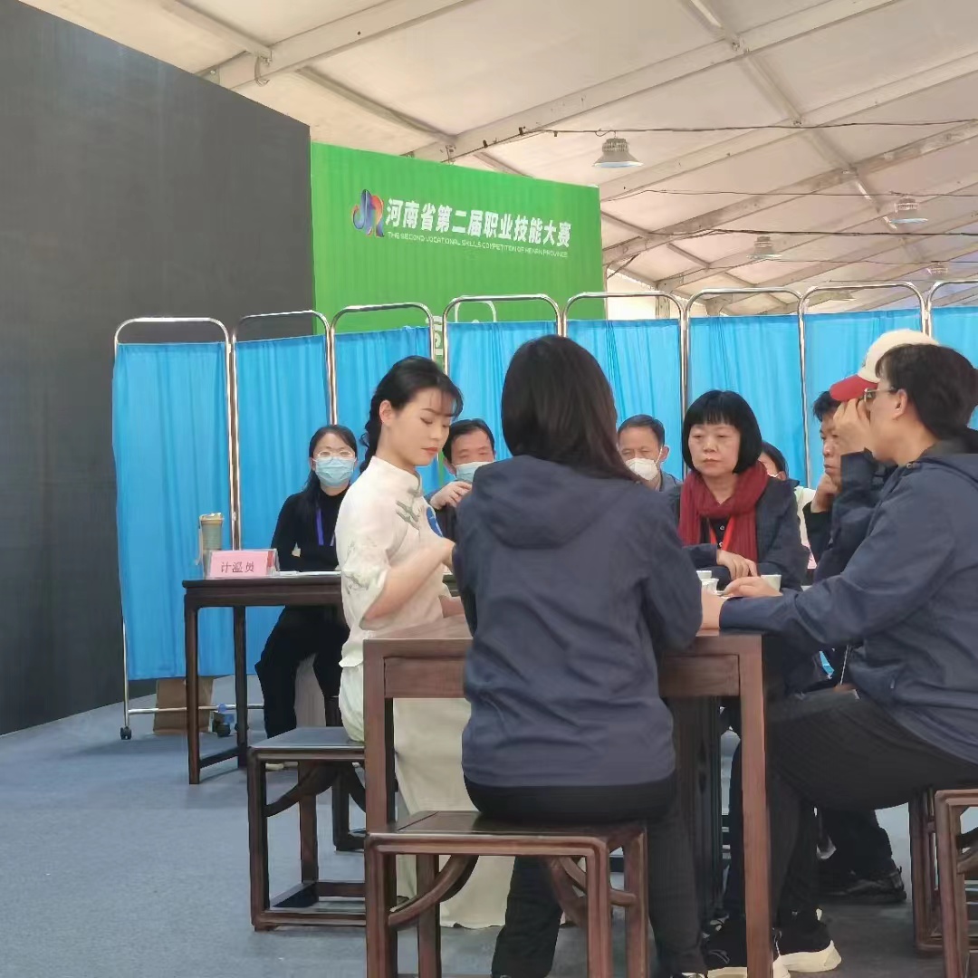 2023年4月25日,公司空乘专业教师李景慧、员工王欣代表鹤壁市参加由河南省人民政府主办,河南省人力资源和社会保障厅、濮阳市人民政府联合承办的河南省第二届职业技能大赛茶艺(国赛)项目。经过三天紧张而激烈的角逐,圆满完成了以国赛为标准的各项比赛项目。
