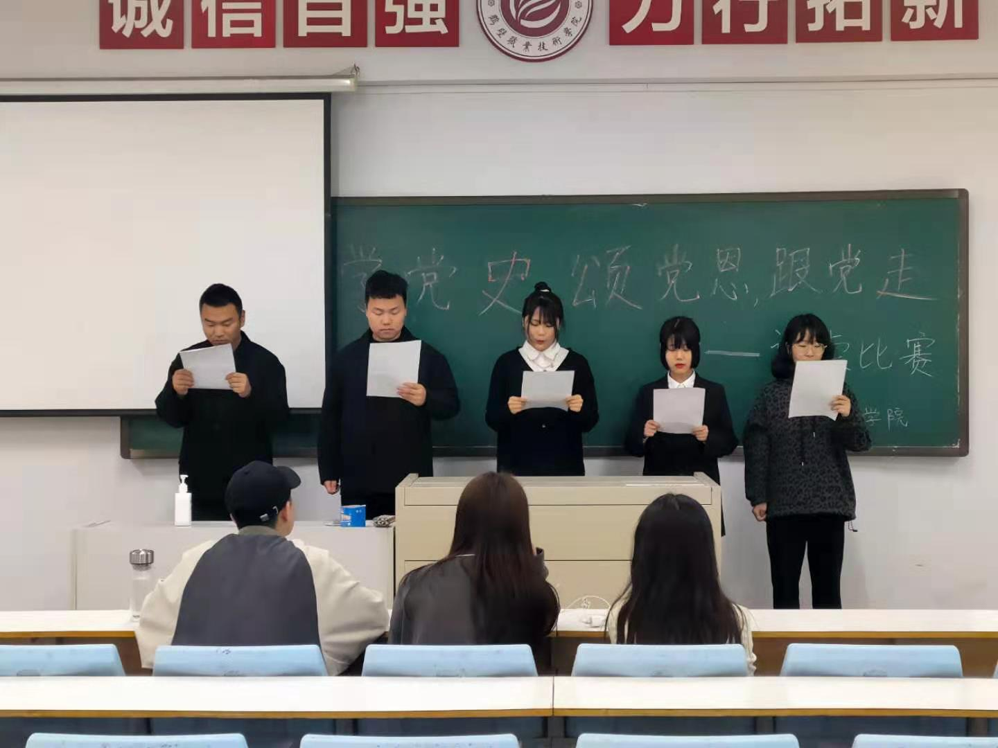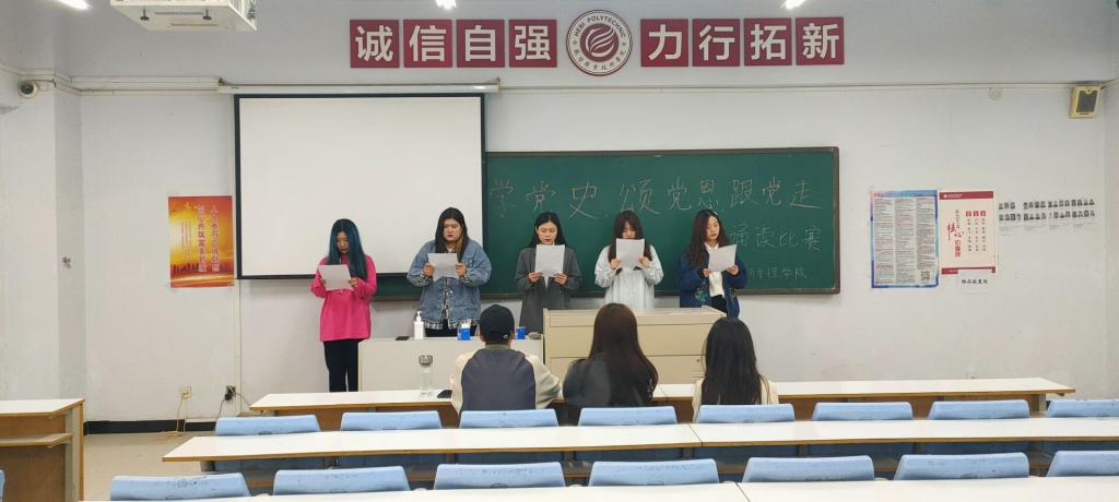 2021年4月1日中午12:00,在樱花园自强楼3401和3402教室,经济管理学院举行了以“学党史 颂党恩 跟党走”为主题的《诵读经典缅怀先烈》的朗读活动决赛。本次活动由经济管理员工会学习部主办,由公司员工会执行主席和部长到场评委。