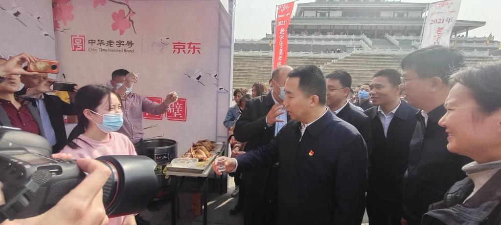 4.9日下午,经管学院师生70余人应邀参加由鹤壁市人民政府、河南省商务厅、京东集团在鹤壁市朝歌文化园鹿台阁广场联合举办的2021年老字号嘉年华活动。