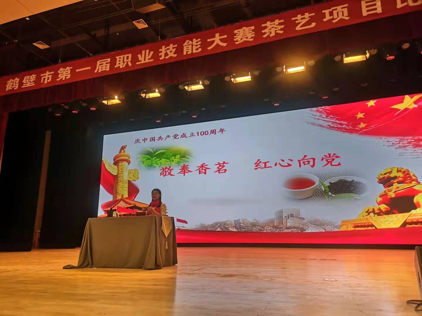 2021年5月13日,在鹤壁市第一届技能大赛茶艺项目中,经济管理学院空乘专业孙雪洋、郭冰琦和旅游管理杨森取得员工组前三名的好成绩。