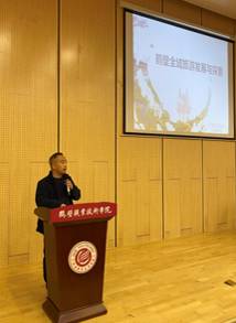 王中文研究员结合实际案例对鹤壁全域旅游的发展概况做了报告,从文化到旅游,从外市到我市,从外省到我省,从古到今,纵横解析,语言风趣,现场掌声阵阵。王研究员盛情邀请与会师生到文旅局参观交流,并鼓励同学们积极报名讲解员和主持人,为学院员工实习就业提供了支持。为落实疫情防护要求,到会师生均佩戴口罩。