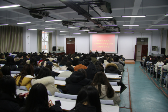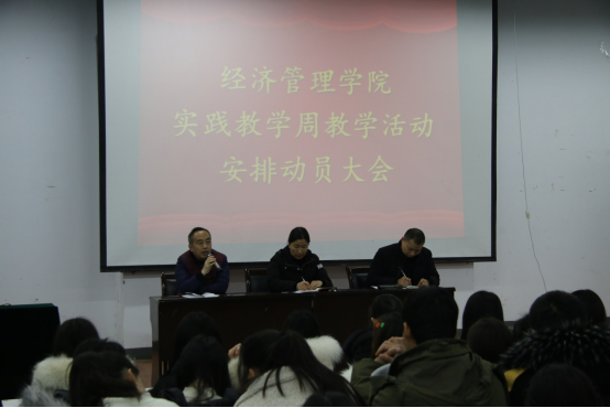公司自2019级起每学期安排1周社会实践活动,为了做好社会实践周活动安排,经济管理学院于2020年1月8日下午4:30在拓新楼二楼报告厅召开了实践教学周教学活动安排动员大会。经济管理学院副经理白钢华、经济管理学院副书记元世娇、经济管理学院教学办主任焦长义和全体2019级在校生及其辅导员参与此次动员会。
