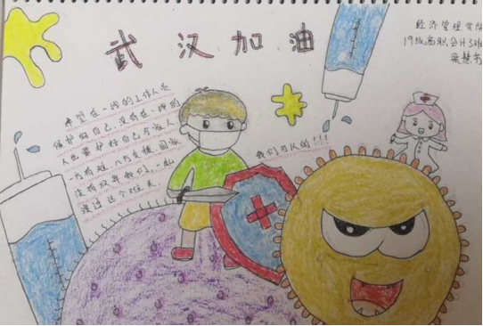 向奋战在抗击疫情第一线的工作人员致敬,为武汉加油,为祖国加油,鹤职院经管学院学子用手抄报、绘画、视频等形式表达感谢之情。