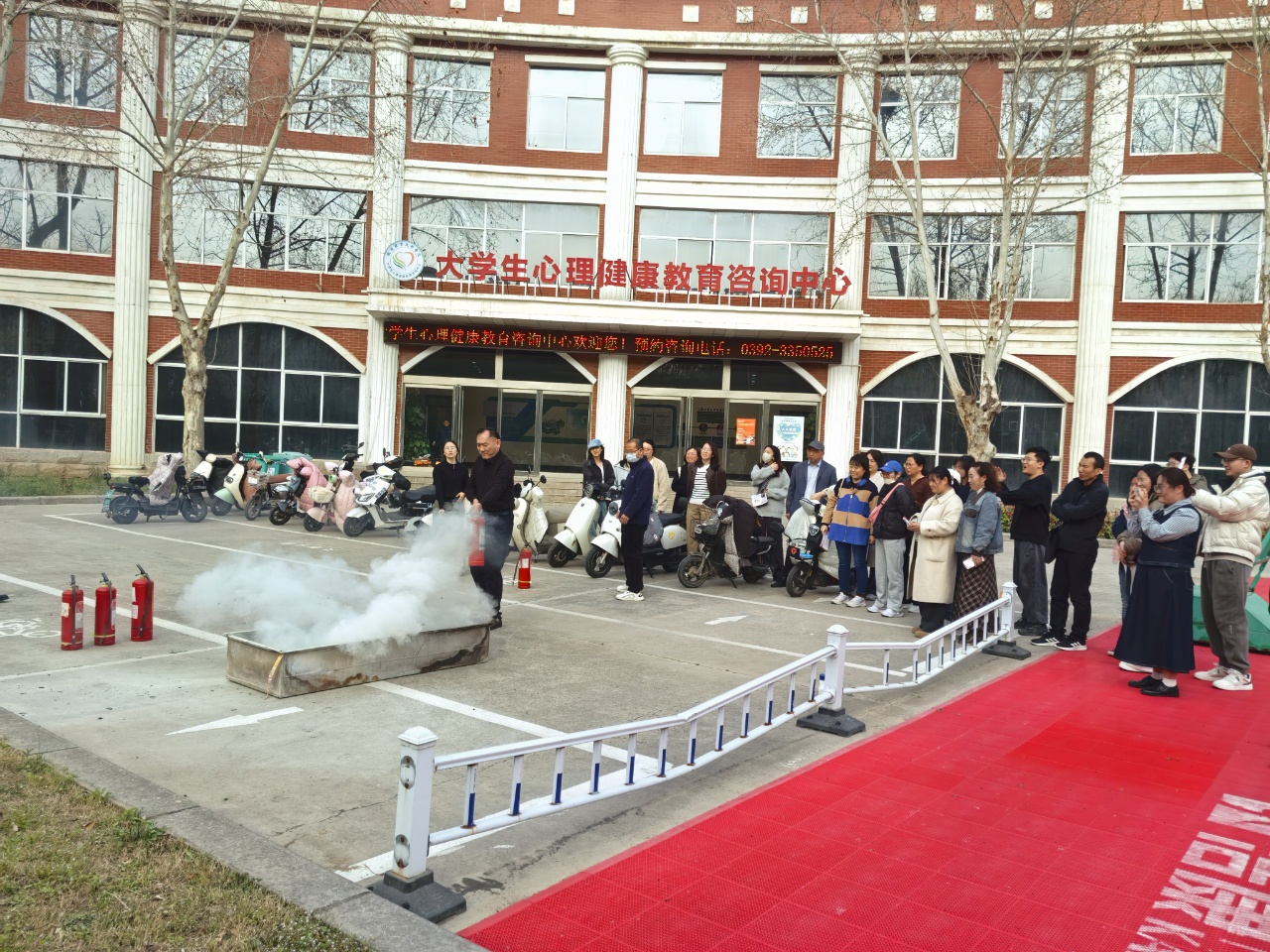 在实操环节,教官现场演示了干粉灭火器“提、拔、握、压”四步操作法。多名教职工踊跃上台,亲身体验灭火过程,切实掌握了初起火灾的扑救技能。