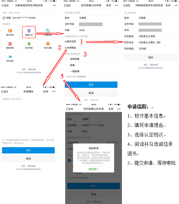 第三步:家庭经济困难认定。(操作路径:登陆首页—困难认定)