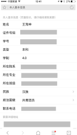 个人基本情况系统自动显示,请认真核对。如有问题,请和学院辅导员老师联系。